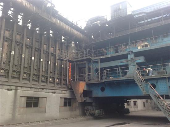 焦炉出焦的大量高温含尘烟气,经导焦槽上大型吸气罩捕集后,通过接口翻板阀进入集尘主管,送入蓄热式冷却器冷却,然后进入袋式除尘器净化。净化后的烟气通过风机、消yin器及烟囱排入大气。含尘气体从布袋除尘器入口进入后,由导流管进入各单元室,在导流装置的作用下,大颗粒粉尘分离后直接落入灰斗,其余粉尘随气流均匀进入各仓室过滤区,过滤后的洁净气体透过滤袋经上箱体、提升阀、排风管排出。